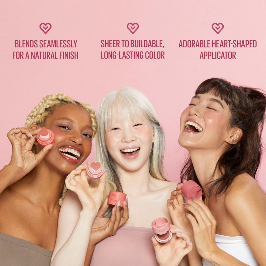 Meet your blush hero: the Kaja Cheeky Stamp Blendable Blush — a cushion‑style blush with a built‑in heart‑shaped applicator that makes cheek colour fun and fast.