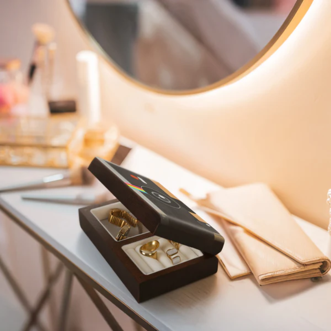 If going out without earrings is not an option (even if you’re running late), this wooden jewelry box is made for you. Featuring a camera illustration, it’s perfect as a travel jewelry case, vanity organizer, or a stylish decorative piece for your shelf.