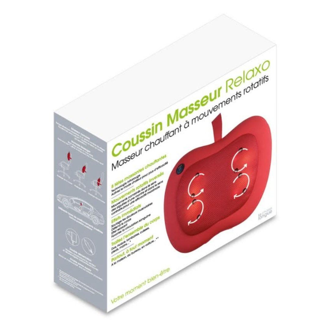 The ergonomic shape of this massage cushion allows you to massage from your neck to your feet, including your lower back and thighs. The heated massage heads enhance the massage effect.
